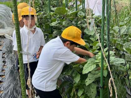 今日も子どもたちが茄子を中心に収穫作業に入りました。取れ時いうのがあって、それを逃すと美味しくなくなったり、野菜をダメにしたりしてしまいます。できるだけ朝の取れたてを「長原マート」でみなさまに提供したいと考えていますが、なかなかその機会をたくさん持つことができず、学校でも苦慮しているところです。何か良いアイディアのある方がいらっしゃいましたら教えてください。
