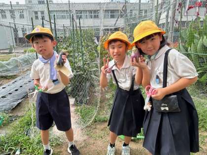 子どもたちは自分で収穫する作業がだんだんと慣れてきたようです。ハサミを上手に使いながら一つ一つ優しく丁寧に収穫できています。生き物を愛する気持ち、生き物に感謝する気持ちを忘れないでほしいと思います。