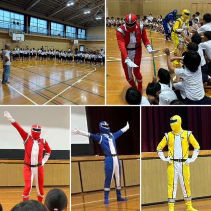 「長原レンジャー」による、夏休みの過ごし方についてのメッセージ舞台が開かれました。