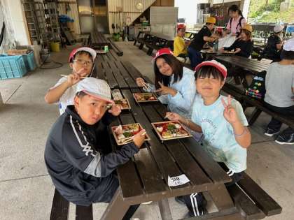 みんな朝が早く、お腹が空いていたのか、もぐもぐとお弁当を食べています。お腹を満たした後はモニュメントまでみんなで行きます。