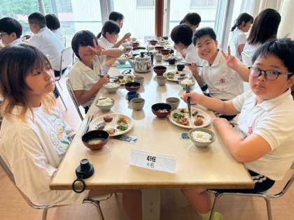 みんな食欲旺盛で、パクパクと食べる様子に教職員も安心。