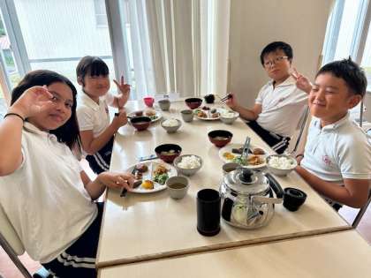 朝の会を終えた子どもたちは、食堂に集まって楽しい朝食の時間を迎えました。