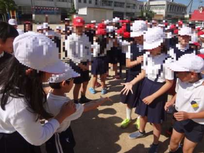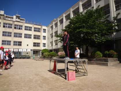 原田さつき先生の教育実習が本日最終日ということで、スマイル集会前にあいさつがありました。スマイル集会では、集会委員の紹介の後、全員でじゃんけん列車を楽しみました。