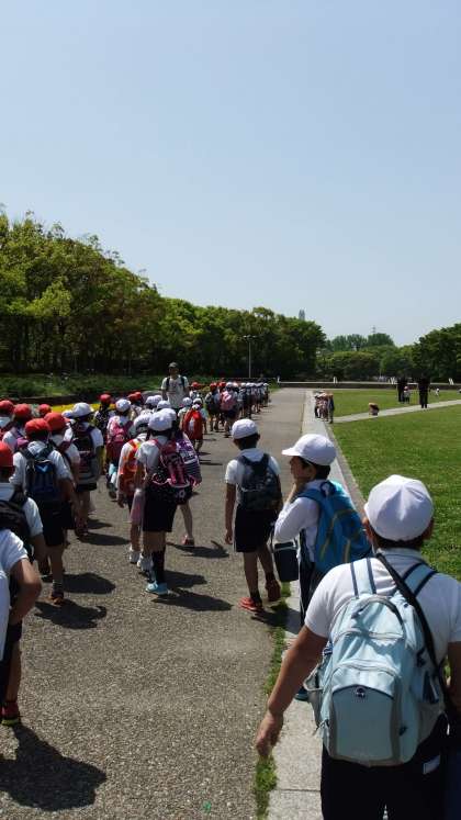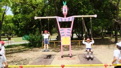 大泉緑地に着くと大きなすべり台が2種類あり、子ども達は大喜びでした。