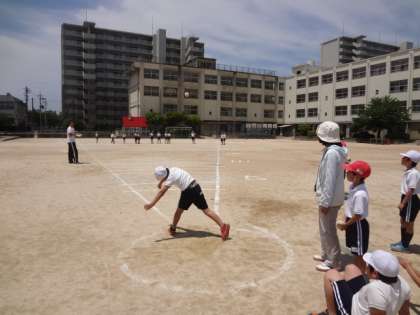 2年生は初めての立ち幅跳びでしたが、先生の指示をよく
