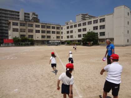 投げなさい!」と言われて、精一杯遠くまで投げていました。