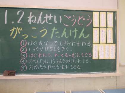 学校中の様々な場所を見学し、それぞれにお話を聞きました1年生は2年生と手をつなぎ、きちんと並んで行動することができました。2年生は大変立派な態度で1年生を案内していました。子ども達から珍質問もありで、笑顔いっぱいのたんけんになりました。