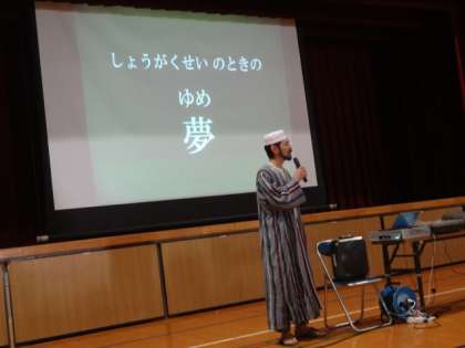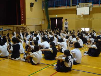 小学校の時に持った夢を実現させた坂本さん、「あいさつ」「ありがとうの気持ち」「じぶんのもちあじ」の大切さについて子どもたちにわかりやすく話してくださいました。