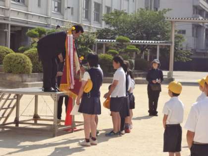 チームのメンバーは、児童朝会で全校児童の前で表彰状をもらい、大きな拍手を受けて少し照れくさそうでした。
