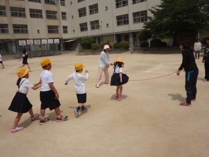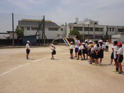 最後の大縄では、1年は“大波小波”をするなど、学年に合った跳び方で、楽しく跳んでいました。