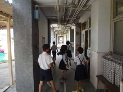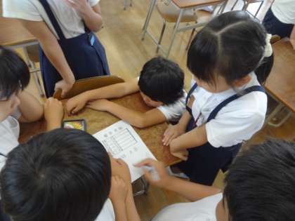 6月2日(木)今日のゲームは“なんの日でしょうかクイズ”でした。教室前の廊下には靴がきれいに並べてありました。「○月×日は何の日でしょう?」という質問に、みんなで相談して答えを書いていました。スマイル集会終了後、職員室前で解答用紙が集められ