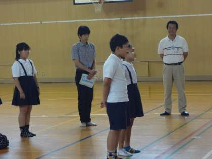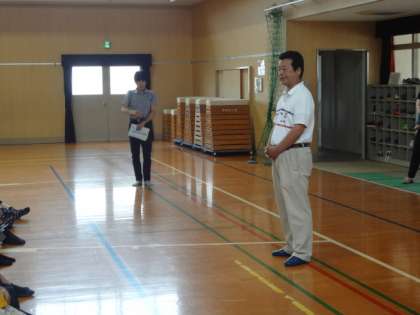 6年生の子どもたちが朝早く体育館に集合、校長先生のおはなしの後、代表児童が見送りに来られた保護者の方々にあいさつをしました。