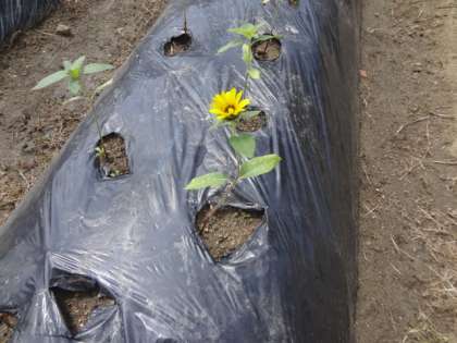 地域の皆さんと植えた長原ガーデンのひまわり 第1号が咲きました!