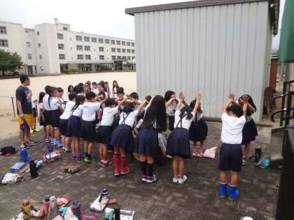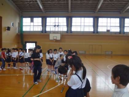 ゲームの後に長原の4年生が音楽のプレゼント(“明日がある”などの曲を合奏・合唱)をしました。交流会がとても楽しかったようで、平野支援学校のお友だちが全員に握手を求めて歩きました。長原の子どもたちは通用門前でアーチを作ってお見送りをし、お互いに別れを惜しんでいました。