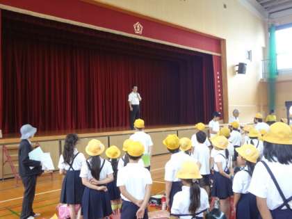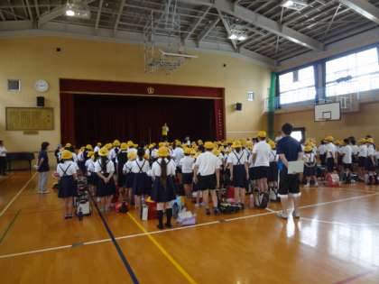 「ただいまより集団下校訓練を開始します。(中略)今回は、暴風雨の中、集団下校する訓練です。……」5時間目が終わってすぐ全校放送が流れました。