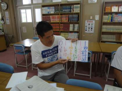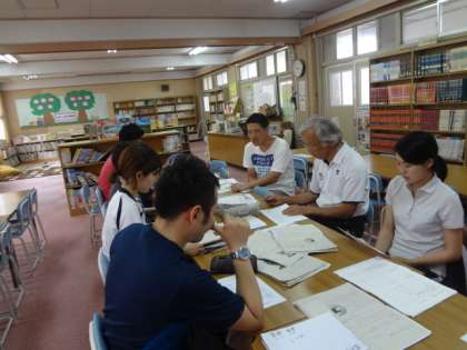 集団下校訓練後、図書室で国語科の研修会を行いました。
