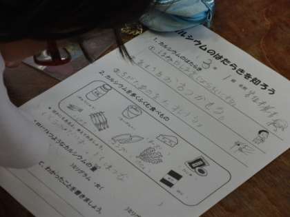 カルシウムには3つのはたらきがあること、どんな食品にたくさん含まれているのか、1日にどれくらい摂取すればいいのかをわかりやすく教えていただきました。3年生は男子より女子の方がたくさんカルシウムを摂取しなければいけないと知り、驚く人もいました。