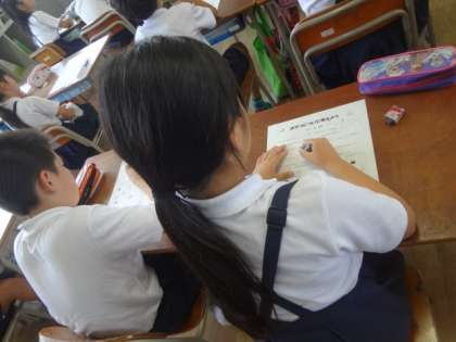 栄養教諭の先生が来られ、“おやつについて考えよう”という授業がありました。