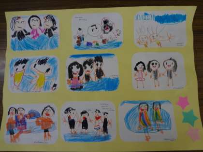 楽しかった思い出を絵にしてくれたことがよくわかりました。