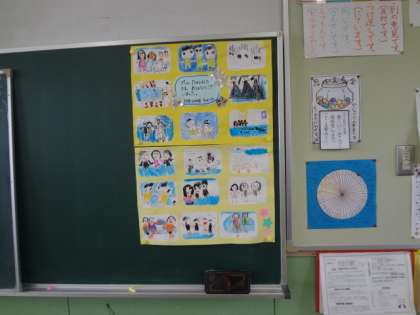 さっそく教室の黒板にはられていました。