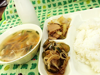 9月12日(月) ホイコウロー とうふのスープ きゅうりともやしのあえもの 米飯 牛乳