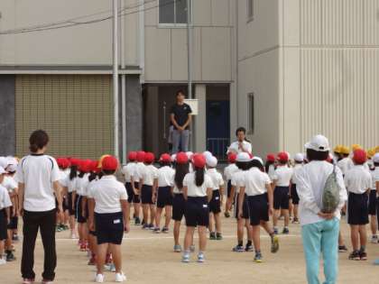今朝の児童朝会で、校長先生から紹介の後、子どもたちみんなにあいさつをしていました。運動会の練習を含め、長原小学校の子ども達といろんな勉強をすることになります。