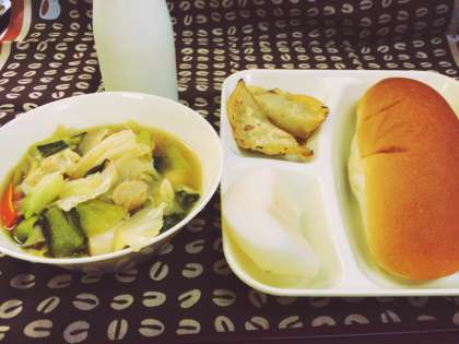 9月14日(水) 中華煮 あげギョーザ なし(豊水) リンゴジャム パン 牛乳