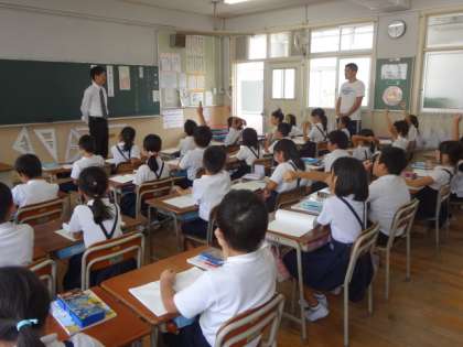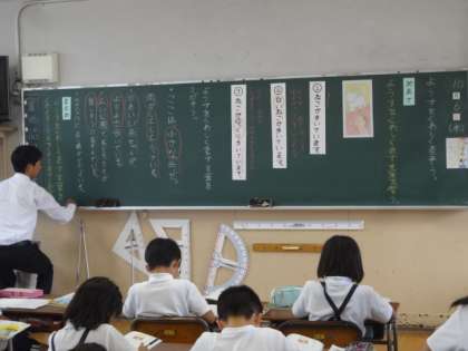 子どもたちはようすをくわしく表す言葉を一生けんめいに探し、みつけた言葉に印をつけていました。一時間の授業を通して、様子を表す言葉を使うことにより文章をくわしく表すことができることを学んでいました。
