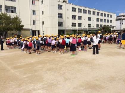校長先生からは、“台風等の急に下校する状況があること”や“班長の指示に従うこと、交通ルールを守ること、整列して登下校することの3点を注意すること”について改めて話がありました。その後、各地区に分かれて集団下校を行いました。