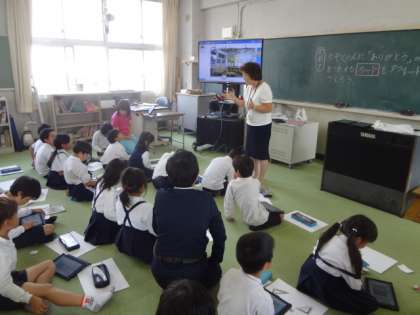 2年生も初めてのタブレットでしたが、写真を撮って、カードに貼付け、スタンプを押すなどして、カードづくりに取り組みました。また、今日は川野先生に指導していただいたので、いつもと少し違った雰囲気の中で学習することができました。川野先生から「3学期までにカードを3枚作っといてね。」と宿題をもらいました。2年生頑張れ!