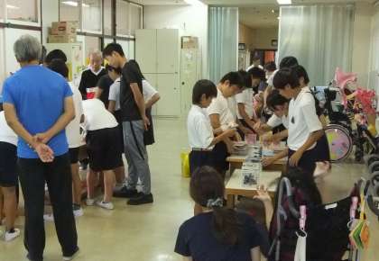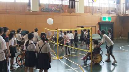 平野支援学校の1〜3年生グループはCDドミノで、4〜6年生グループとは風船バレーで交流しました。短い時間でしたが、楽しく交流することができました。
