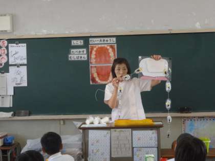 今日は歯科衛生士さんに来ていただき、2年生が歯みがきの学習をしました。