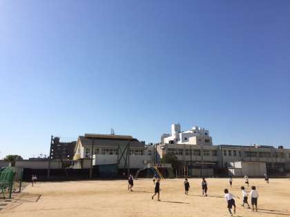 今日は陽射しも強くてとても暖かく、子どもたちも積極的に運動場に出て遊んでいます。写真は1時間目と2時間目の間の休憩時間の様子です。