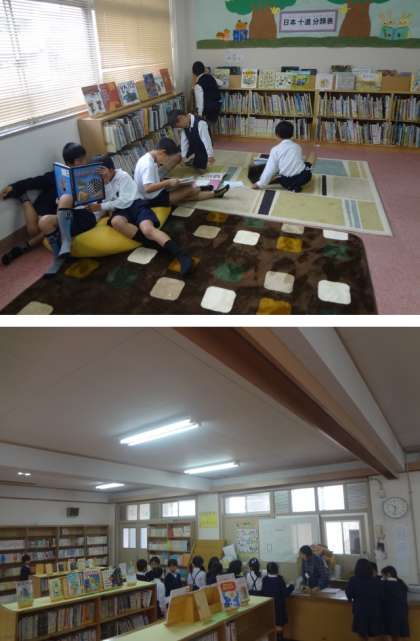 今日はあいにくの雨のため、15分休みのなわとびタイムは中止になり、図書館開放になりました。