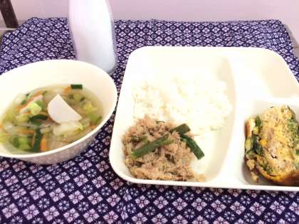 千草焼き すまし汁 ツナと三度豆のそぼろ