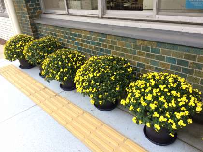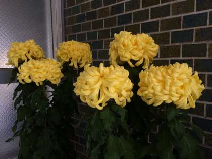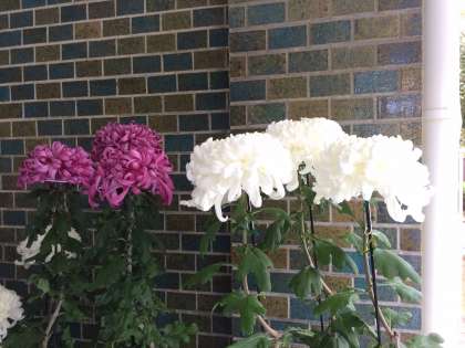 扉の前の菊はさらに大きくなり、とてもきれいに咲いています。