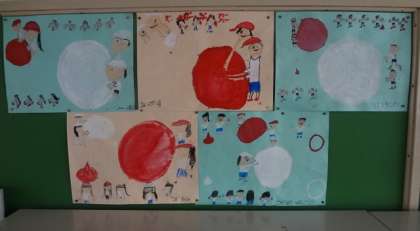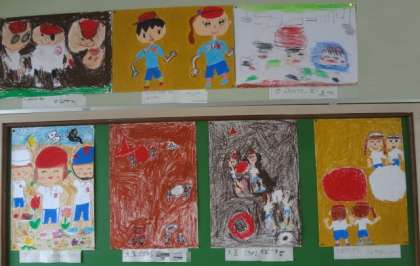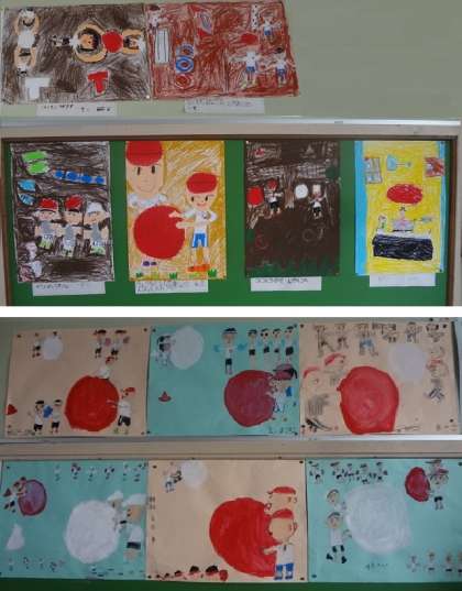 2年生がそれぞれの運動会の思い出を描いています。