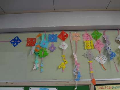 1年生の教室の壁面に、切り絵が飾られていました。