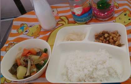 鶏肉と野菜の煮もの じゃこ豆 かぶのゆず風味