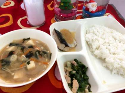 さばのみぞれかけ みそ汁 おおさかしろなの煮びたし
