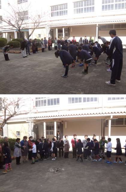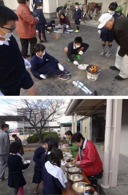 地域の方々にも食べていただいた後、いっしょに後片付けをし、最後は一人ひとりあいさつしながらお別れしました。とても楽しいひと時で、「とっても楽しかったわ〜」と、地域の方々も非常に喜んでくださいました。