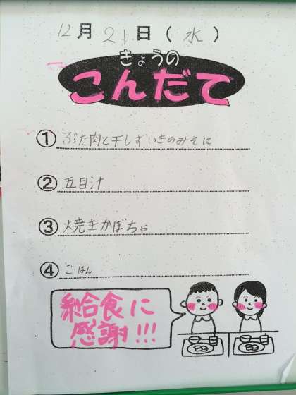 「2学期給食ありがとうございました。3学期もよろしくお願いします!!」