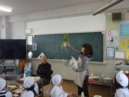 佐々木先生自身が作られた大根も持参してくださり、子どもたちに見せてくださいました。