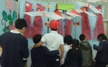 長原小学校の児童作品も、毎年、交流展示していただいています。