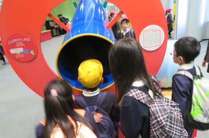 4年生が社会見学で大阪市立科学館に行きました。様々な展示を見て楽しみました。]