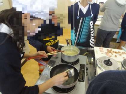 ジャガイモやソーセージ、ピーマンなど使って、各班でメニューを考えて作りました。