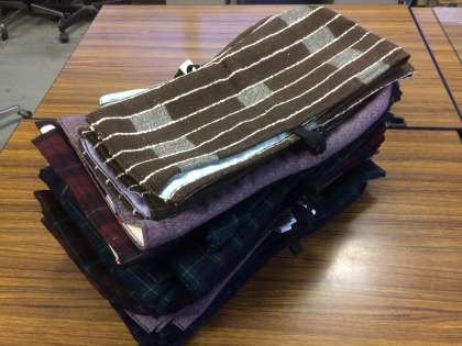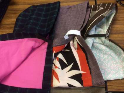 生涯学習ルームの手芸教室の方が、防空頭巾を30着持ってきてくださいました。