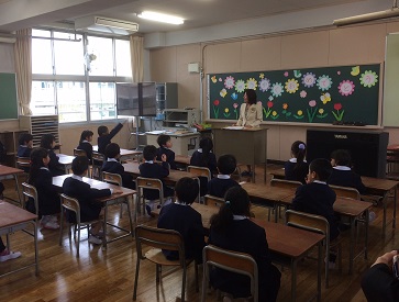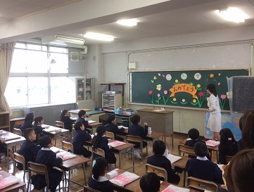 入学式の後教室に戻った1年生は、学級担任からお話を聞きました。