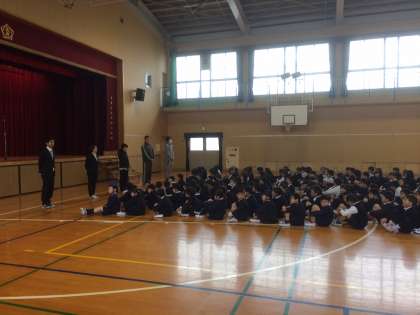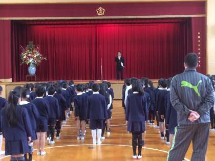 始業式では、校長先生からのお話の後、2〜6年生の学級担任の発表と、それ以外の職員の紹介がありました。