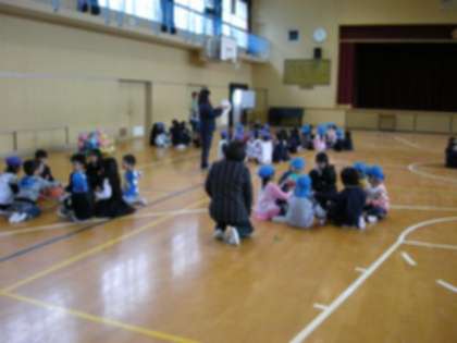 2月10日(月) 1年生が長吉第二幼稚園、長吉第一保育所の年長の子ども達を招いて交流会を行いました。最初は、教室で算数の勉強の様子を見てもらい、そのあと体育館で3校園が入り混じってのゲーム大会を行いました。幼児達が早く学校へ通いたいなあと思っていただければうれいいです。